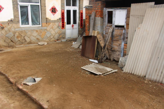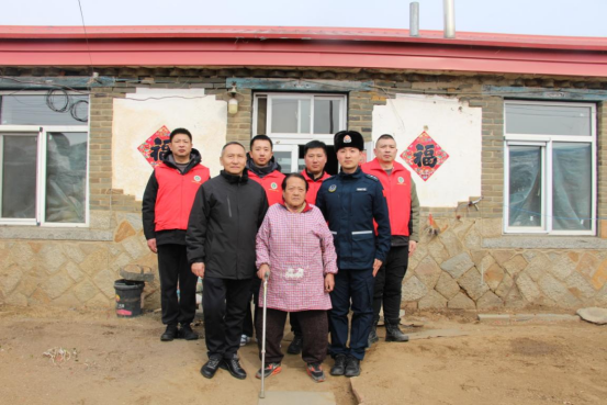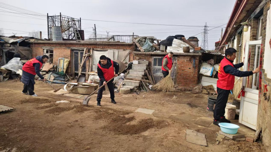 图5-6:退役军人志愿者为老人清洁房屋院外