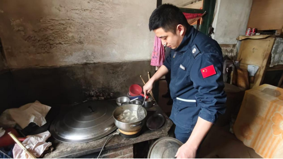 图7-8:部队官兵为老人煮饺子