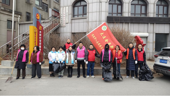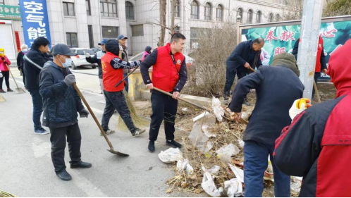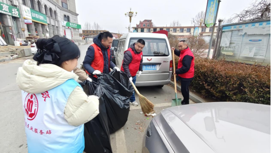 图2:街道退役军人服务站志愿者清扫路边垃圾