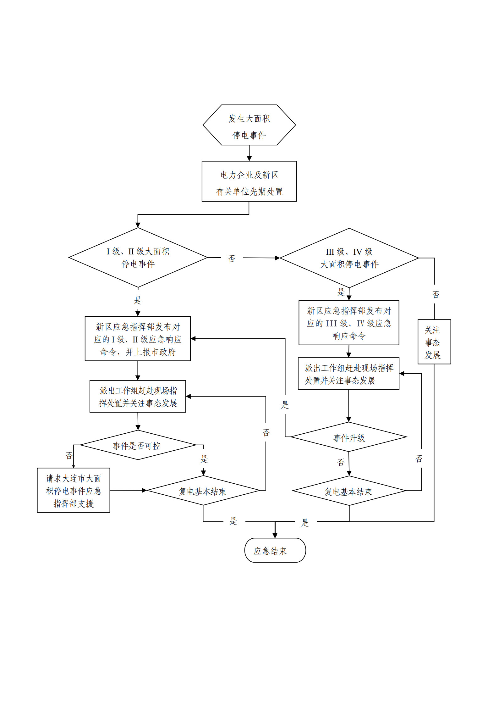 当发生重大、特别重大大面积停电事件时,新区应急指挥部在大连市大面积停电事件专项应急指挥部(以下简称市应急指挥部)统一领导、组织和指挥下开展大面积停电事件应对工作。