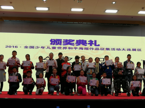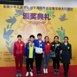 日前,以 “庆祝和平”为主题的“2016•全国少年儿童世界和平海报作品征集活动”完美落下帷幕。大连市共有6万多人参加了此项活动,活动共精选出金奖30名,银奖100名,铜奖150名。大连市101中学满载而归。其中,初二六班的陈毓霖凭借她的才艺勇夺金冠,另外还有初二一班孙佳怡、初二二班李孟真、初二九班汤炎圣、初二九班张荷健、初二九班杨盛家等五位同学获得铜奖。