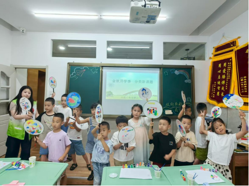随后活动中,为孩子们分发了垃圾分类涂鸦的小扇子,在老师的指导下,孩子们拿起水粉画笔,勾画出一幅幅垃圾分类作品画,创造出了属于自己的垃圾分类创作画。作品完成后,孩子们举起自己的扇子一一向大家展示,喜悦之情溢于言表。