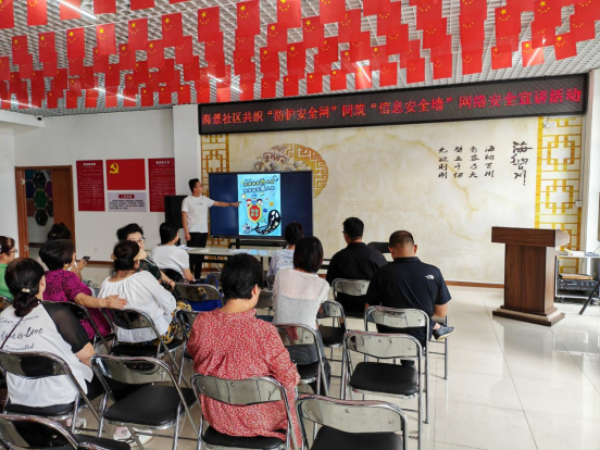 为帮助居民了解网络安全的重要性,提升全民个人信息保护意识和掌握必要的防范技能,营造良好网络安全环境,9月15日,海景社区组织开展了共织“防护安全网”,同筑 “信息安全墙”为主题的网络安全宣讲活动。