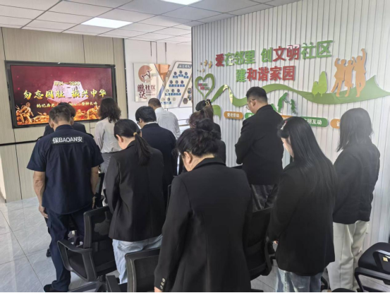 活动伊始,一声声防空警报划破长空,在鸣笛声中,全体人员低头默哀,表情肃穆,深切悼念遇难同胞、缅怀革命先烈,致敬英雄儿女。默哀仪式后,大家共同观看了以真实历史为背景,展现革命先辈坚守信仰的红色纪录片。