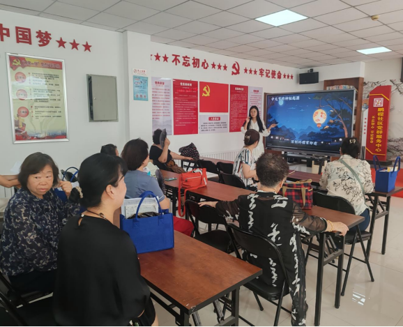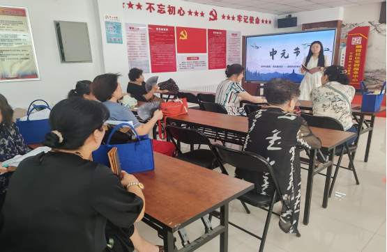 讲座伊始社区工作人员播放了一段的《中元节的由来与传承》短视频。视频以动画形式还原 经典典故,穿插古代祭祀礼仪、不同朝代中元习俗演变的史料画面,短短8分钟的内容,让居民直观感受到中元节 “敬祖、怀亲、感恩” 的核心内涵。
