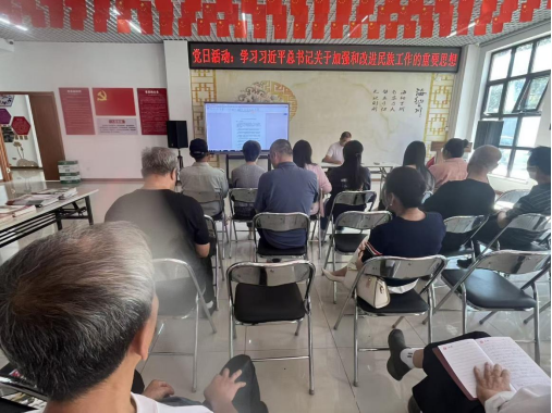 组织全体党员集中学习了“习近平总书记关于加强和改进民族工作的重要思想”这一重要思想总结了中国共产党百年以来民族工作的宝贵经验,科学回答新时代民族工作举什么旗、走什么路等重大问题,概括起来就是“十二个必须”, 阐明新时代党的民族工作的历史方位、 旗帜方向、 重要任务、 工作主线、 实现方式, 是做好民族工作的“四梁八柱”,是逻辑严密,系统完备的有机整体。9月18日,由社区支部书记领学了这一重要思想,为凝聚民心、共筑民族团结根基注入文化力量,引导广大党员群众发现身边各民族文化交往、交流、交融的故事。