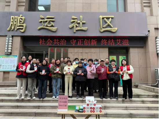 为普及艾滋病防治知识,提高辖区居民的自我防护意识,营造健康和谐的社区环境,大孤山街道鹏运社区在辖区内组织开展了以“社会共治 守正创新 终结艾滋”为主题的艾滋病防治宣传教育活动。