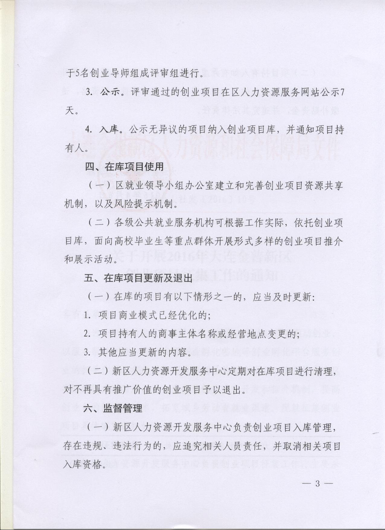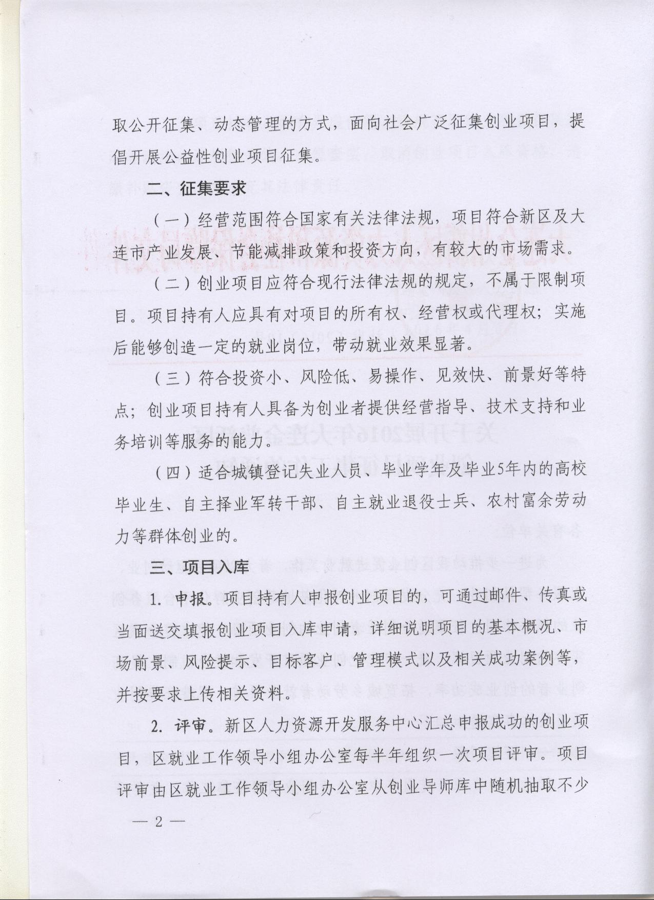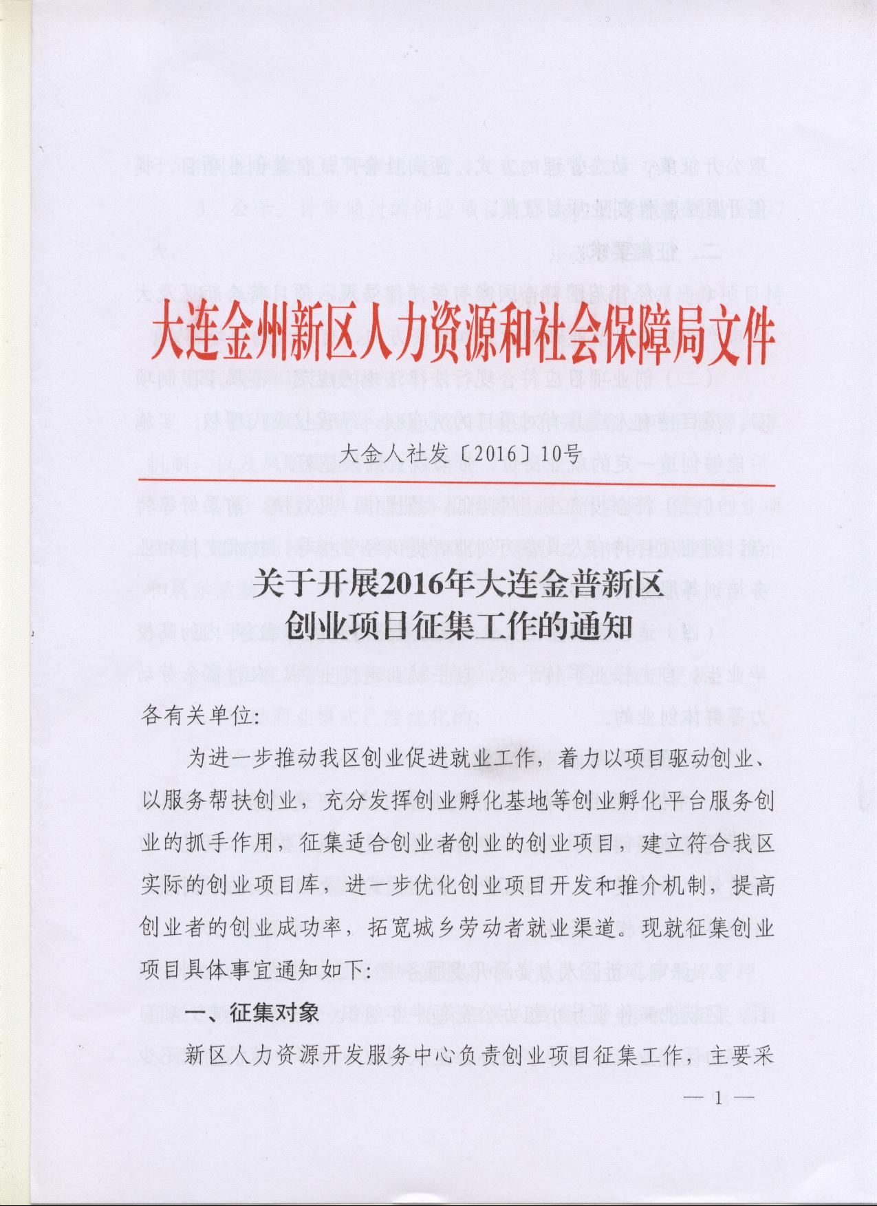 关于开展2016年大连金普新区创业项目征集工作的通知