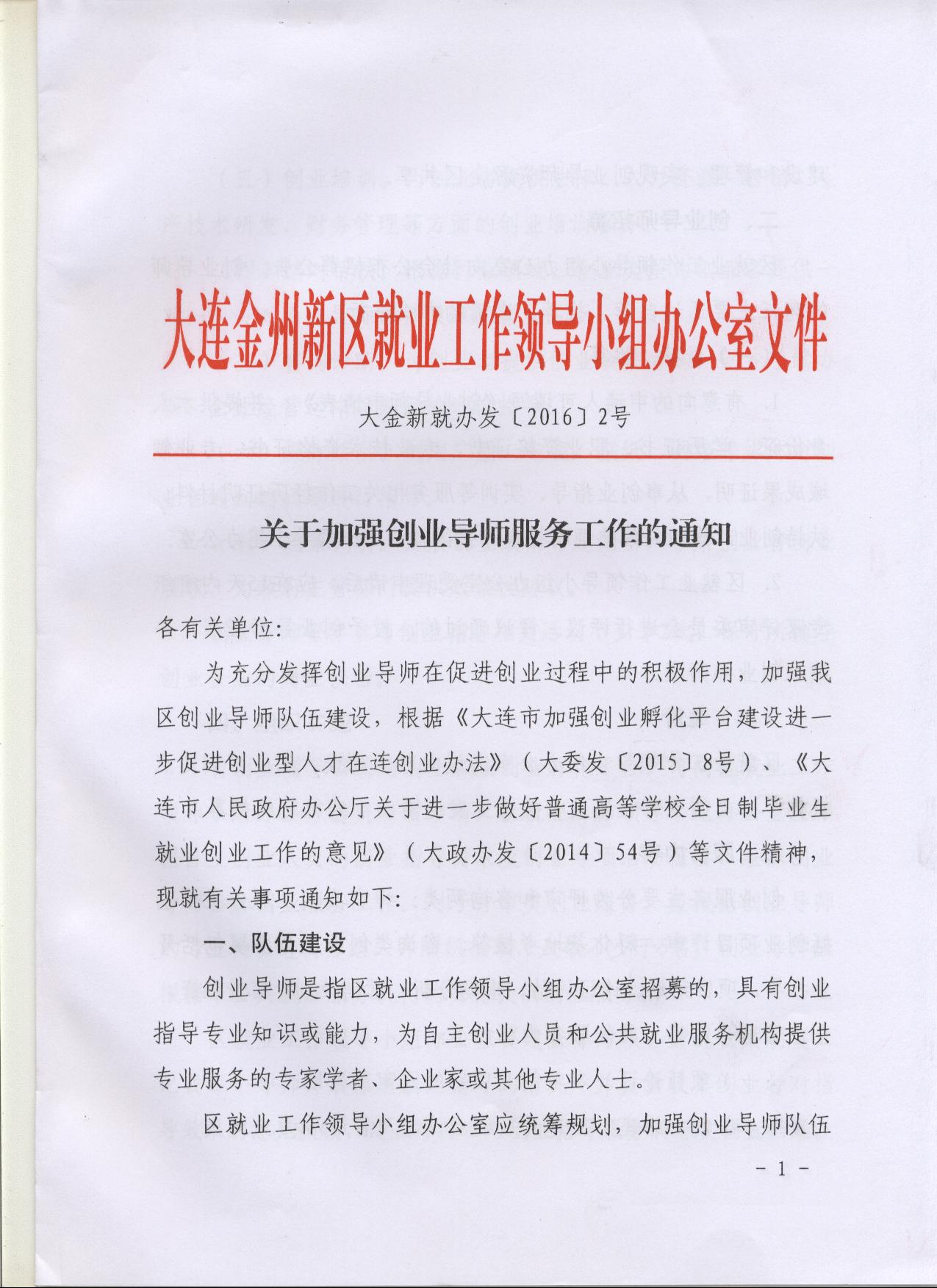 关于加强创业导师服务工作的通知