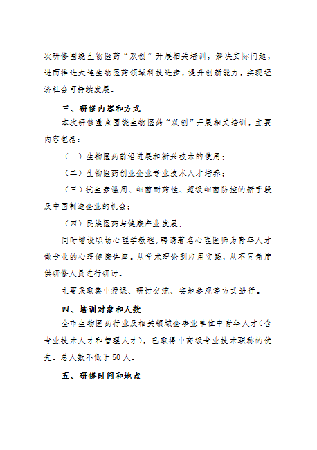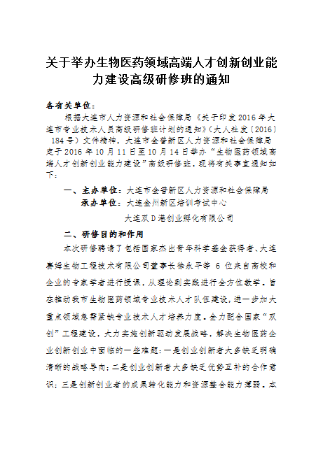 关于举办生物医药领域高端人才创新创业能力建设高级研修班的通知
