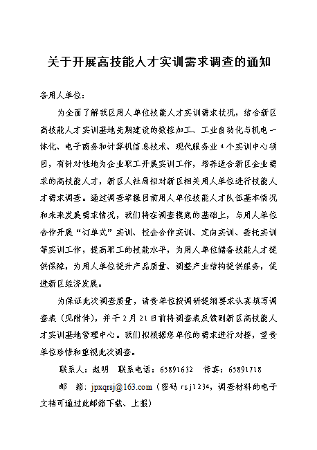 关于开展高技能人才实训需求调查的通知