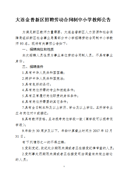 附件1—大连金普新区招聘劳动合同制中小学教师岗位计划.xls 附件2—大连金普新区招聘劳动合同制中小学教师报名登记表.doc