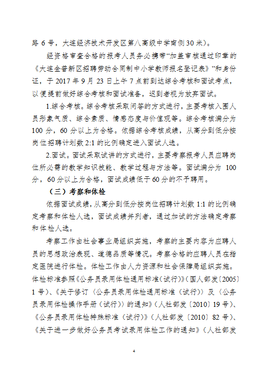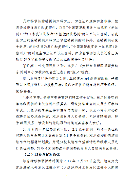 大连金普新区招聘劳动合同制中小学教师公告