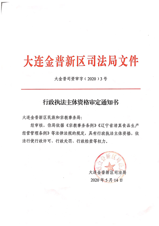 大连金普新区民族和宗教事务局行政执法主体资格公示