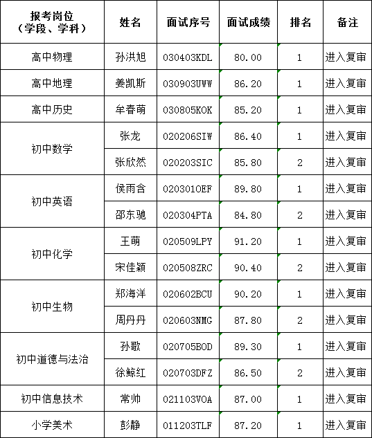 按照《2020年大连金普新区自主招聘中小学教师公告》和《2020年大连金普新区自主招聘中小学教师补充公告》要求,现将第一批通过面试人员名单及有关要求公告如下: