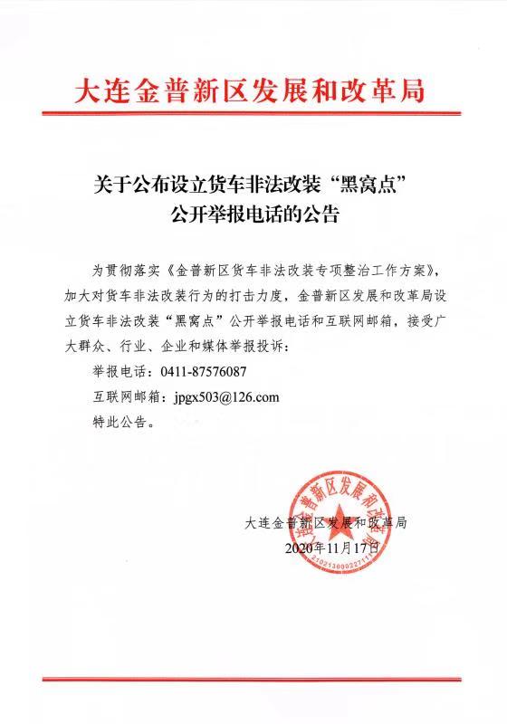关于公布设立货车非法改装“黑窝点”公开举报电话的公告