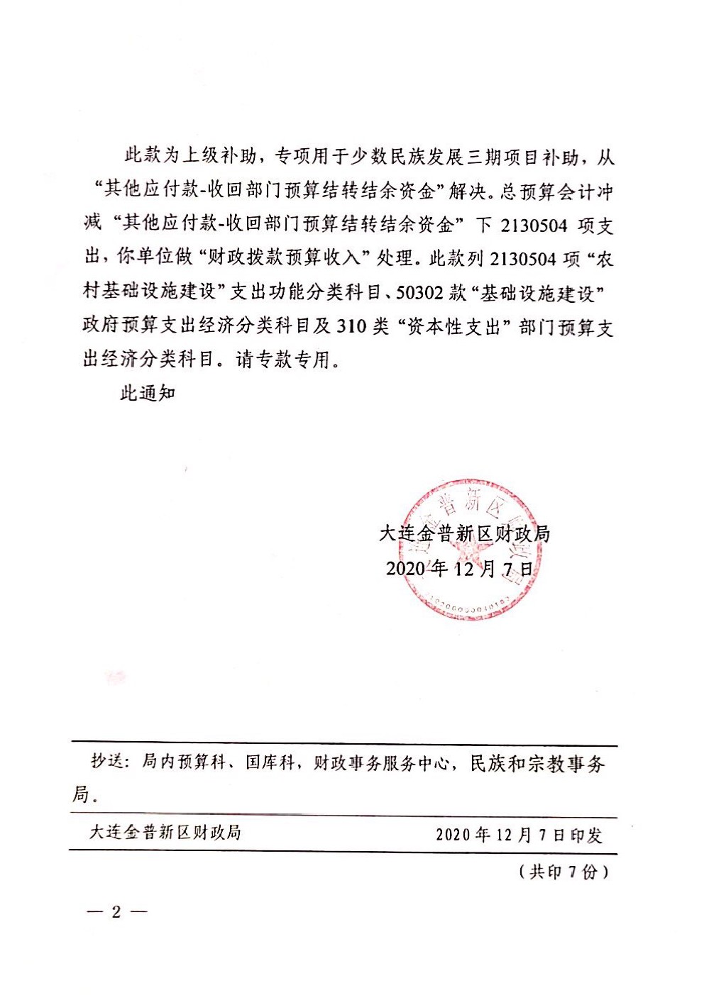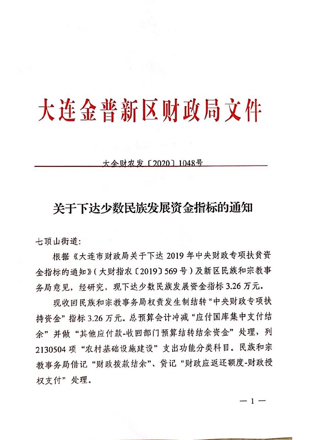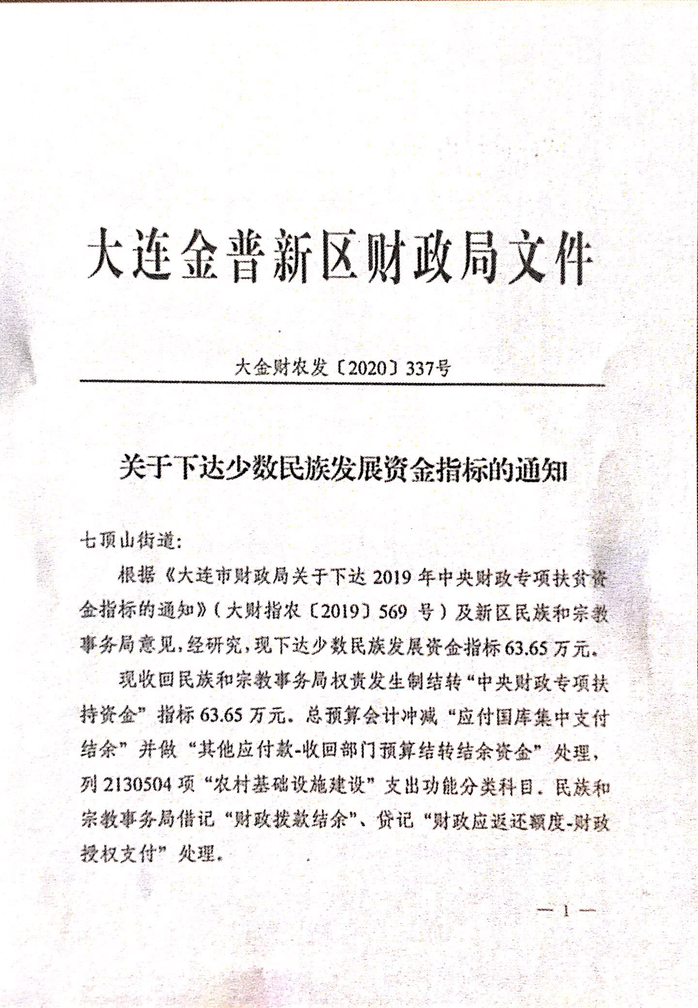 关于下达少数民族发展资金指标的通知-2