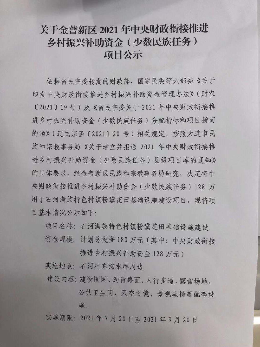 关于金普新区2021年中央财政衔接推进 乡村振兴补助资金(少数民族任务) 项目公示