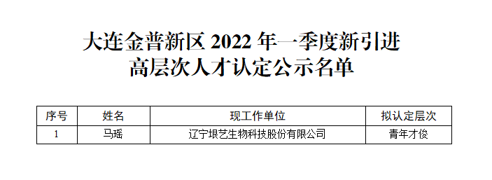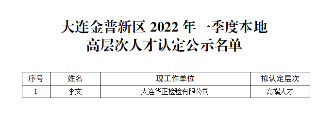 根据《大连市高层次人才认定办法(试行)》(大人才办发〔2021〕13号)规定,经审核我区有1人符合大连市本地高层次人才认定条件,1人符合大连市引进高层次人才认定条件,现予以公示。公示期为2022年4月14日至4月20日。