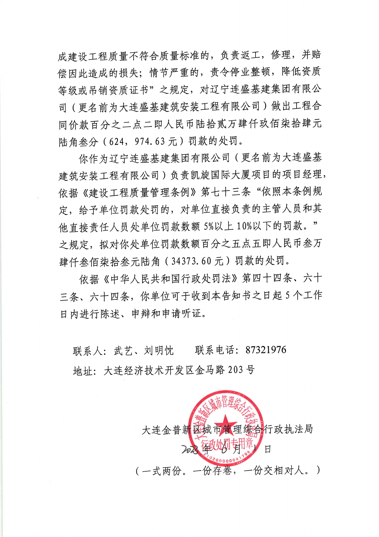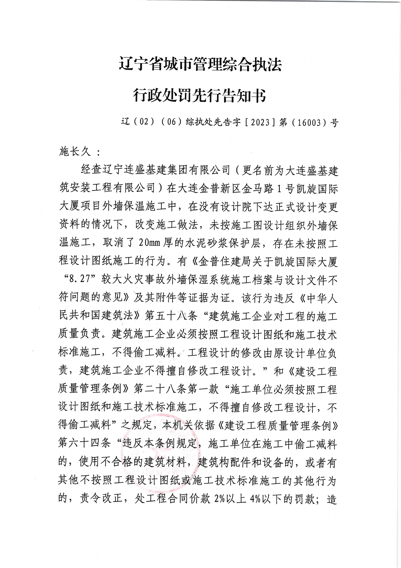 辽宁省城市管理综合执法行政处罚先行告知书--施长久