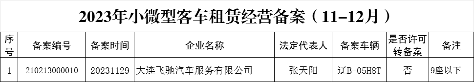 金普新区交通运输局:2023年小微型客车租赁经营备案(11-12月)