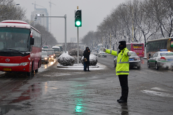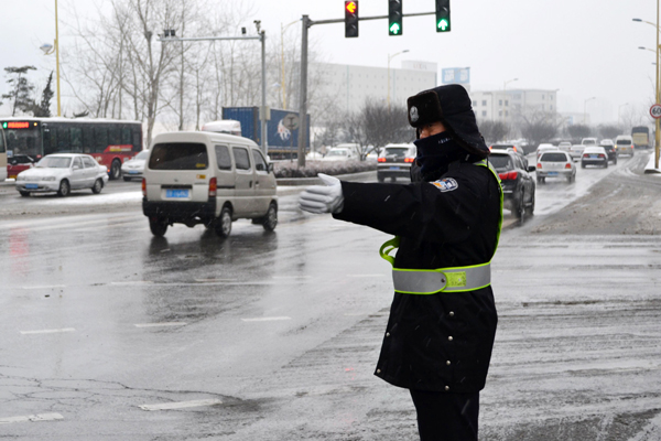 1月20日夜间,大连市发布大雪到暴雪预警,开发区交警部门立即针对恶劣天气预警进行提前部署, 1月21日清晨,全区道路被积雪覆盖,为保障早高峰期间车辆行驶畅通及行人的安全,交警部门启动雪天预警交通应急预案,交警大队全体民警、文职警员全员上岗,开展交通疏导工作。民警到岗后,采取巡逻和定点指挥相结合的方式,立即排查易滑道路、险路、陡坡路段,并与雪天应急联动部门,区、街道环卫处在重要、险要路段喷洒融雪剂,在易滑坡路设置标志,提醒司机路滑绕行,保证路面安全畅通。 由于指挥疏导有力,早高峰期间,辖区内交通秩序井然,未发现严重拥堵现象。