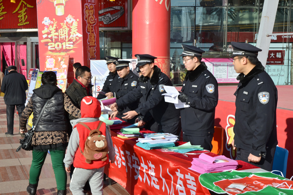 为贯彻落实省厅、市局宣传防范工作部署,进一步提升基层基础工作水平、提升人民群众满意度。2月1日,大连开发区公安分局在安盛广场设立主会场,组织治安、刑侦、交警、巡警、网安、消防、政经保、食药侦等部门共同开展以“警民携手共创平安”为主题的冬季安全防范宣传活动。同时各派出所结合本辖区冬季发案特点,组织社区民警“进社区、进单位、进场所、进小区” 进行宣传。