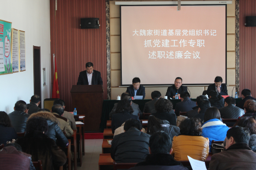 2月12日上午,大魏家街道基层党组织书记抓党建工作述职述廉评议会在街道五楼会议室召开。新区十二督导组成员、机关全体工作人员,各村党总支、党委成员,群众代表共70余人参加。