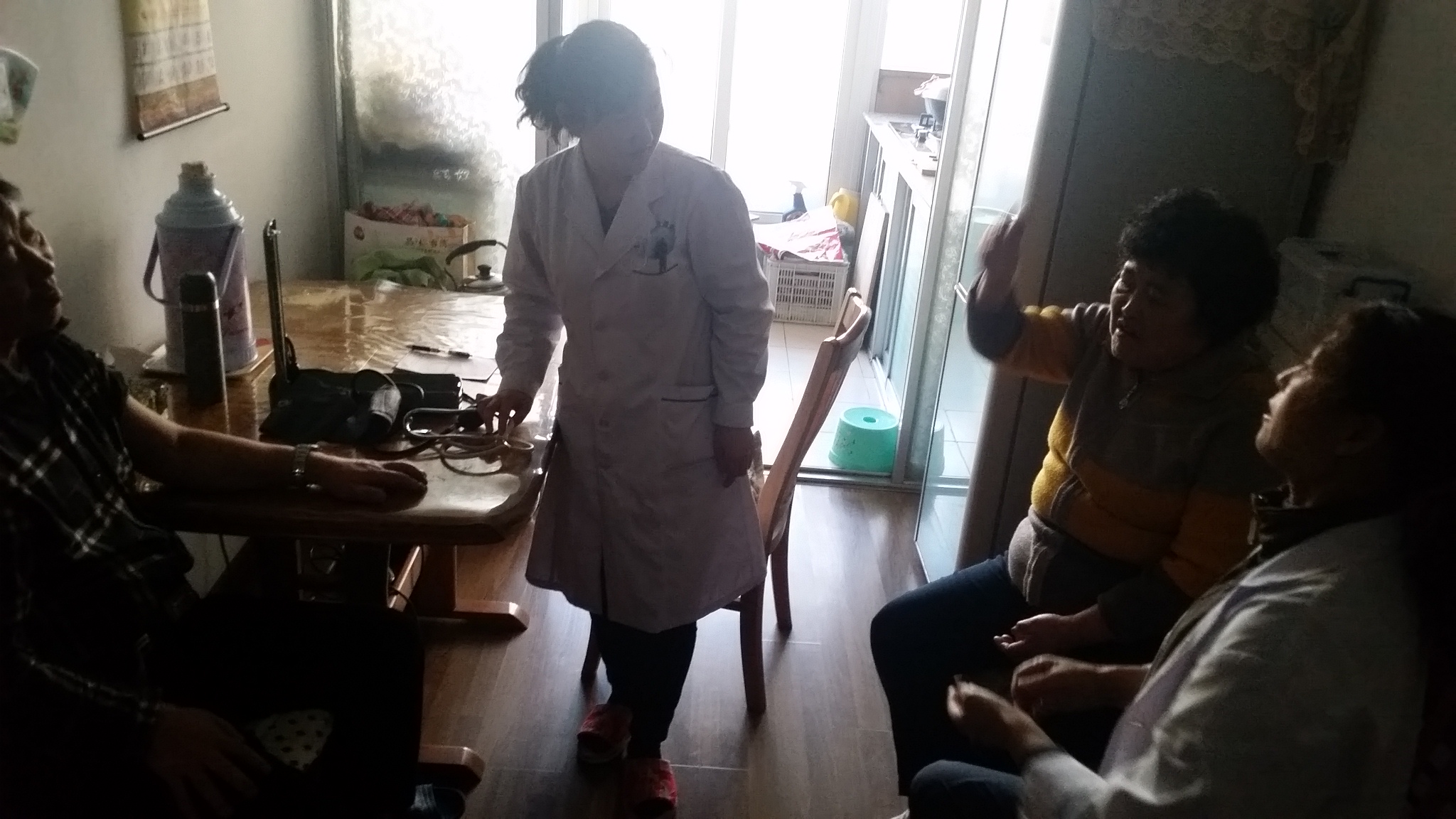2015年8月走访了四户家庭,四户聋哑家庭年龄都较大,当医生到他们家中表明医生的来意之后,老人都十分开心,热情的招待医生。医生为他们测量血压、血糖,之后医生用简单的手语向聋哑人进行了健康指导,告诉他们多运动、低盐并清淡饮食。老人们对医生的服务很满意,并对医生表示感谢,感谢医生上门为他们服务,解决了他们看病难、沟通难的问题。