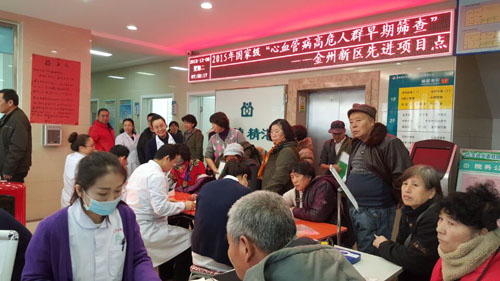 金州新区作为辽宁省6个筛查项目点之一,2015年继续参与该项目,金州新区项目点承担单位为:金州新区疾病预防控制中心、中国医科大盛京医院大连医院、先进街道社区卫生服务中心、站前街道社区卫生服务中心。2015年度初筛人数不少于4800人,高危对象调查人数不少于1200人,短期随访人数不少于1200人,长期随访(2014年度检出的高危人群)人数不少于4000人。金州新区项目初筛地点设在先进街道社区卫生服务中心及站前街道社区卫生服务中心。2015年12月8日,金州新区先进项目点经过紧张的筹备后开始心血管病初筛工作,在辽宁省乃至全国都是率先启动。期间辽宁省项目办领导亲临现场监督指导,帮助解决筛查过程中出现的各种问题。金州新区卫计局及疾控中心主管领导也在第一时间赶到现场,指导工作,慰问工作人员。当天筛查工作于中午11点顺利结束,各项流程无纰漏,顺利完成初筛工作,采集的样本专车送至盛京医院大连医院化验室进行样本分装。