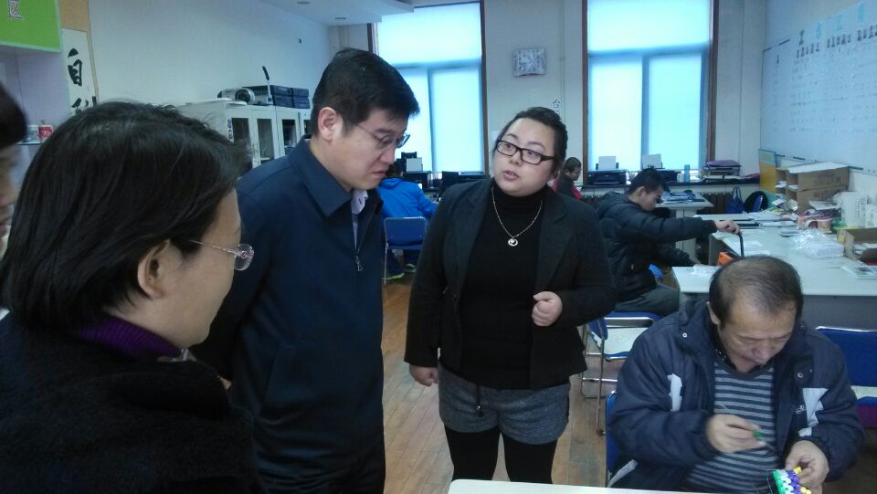 李光主任一行人详细查看了大连慧灵内每个工作室的环境,大连慧灵于主任详细介绍了慧灵的服务理念和大连慧灵的基本运营情况。一进门首先印入眼帘的是两行大字--慧灵使命:推广社区化服务模式,提高智障人私生活品质。慧灵愿景:智障人者平等参与社区建设,共享社会文明成果。中心内的每个学员都在有条不紊的进行着各项工作。首先走进的是职训一室,这个训练室包括了编织组和台历制作组。在台历组有的学员各司其职负责图片编辑、有的负责打印、有的负责切纸、有的负责打孔、有的负责排序装订。小小的训练室俨然是一个完整的流水生产线。目前中心已经承接了几笔台历订单。