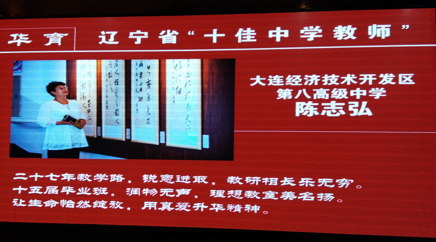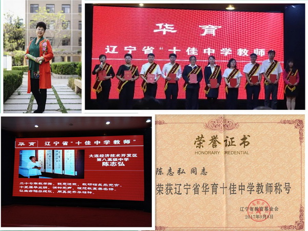 近日,2017年辽宁省华育奖教奖学颁奖大会在沈阳召开。开发区八中特级教师陈志弘荣获2017年“辽宁省华育十佳中学教师”称号。