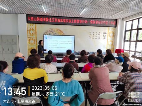 为持续做好社区居民健康教育,进一步提高健康观念,普及中老年人的保健知识,传播健康常识理念,倡导良好的生活方式,近日,大孤山街道海景社区新时代文明实践站联合大连市金州区社区教育学院开展一场以“家庭幸福安康主题教育行动——缓解便秘的中医小妙招”为主题的健康讲座,吸引辖区30余位中老年居民参加。