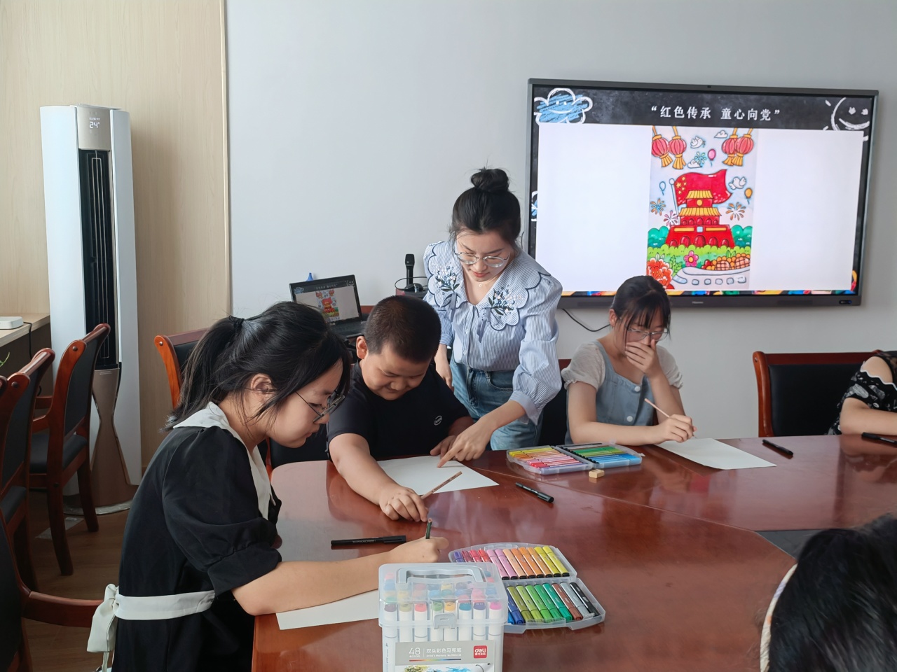 为了培养辖区青少年爱国主义精神和良好的艺术修养,8月15日上午,向应街道团工委、向应街道文化站联合关家村团支部在关家村党群服务中心开展了“红色传承 童心向党”——红色主题绘画活动。