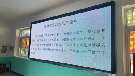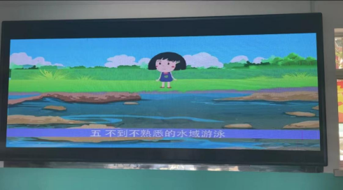 杏树街道在街道LED电子屏上滚动播放防范学生溺水安全提示、《珍爱生命预防溺水》动画宣传片,宣传防溺水的重要性,提高群众的安全意识、监护意识。