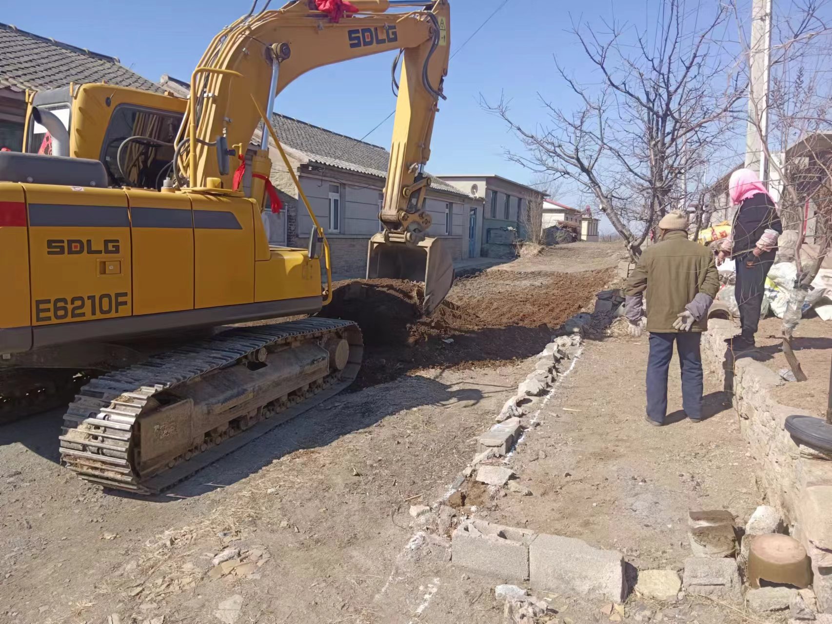 3月20日,复州湾街道粘迟线道路硬化已进场开始施工。