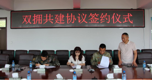 图4:街道办事处副主任赵金凤同志和93253部队42分队代表、海警部队代表签署《共建协议书》
