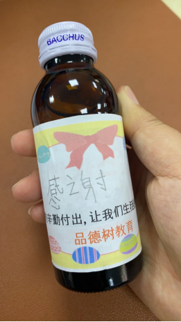 听着孩子们用不清晰的中文向身边的人一声声送上祝福及感谢。孩子们还为社区及物业每位工作人员送上了夏天的饮品,每瓶饮品上都歪歪扭扭写上了中国汉字“感谢”,让我们感受到感恩的力量是如此的伟大。