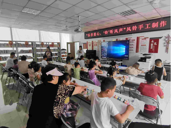 活动现场,志愿给孩子们分发透明风铃,画笔等制作材料,为孩子们展示了彩绘风铃作品,讲解了风铃彩绘的步骤和技巧。孩子们认真聆听老师的讲解,在志愿者和老师的帮助下,开始了对风铃的艺术创作,用颜料在风铃和风铃卡上绘制出心爱的图案,很快,一串串精美别致、漂亮优雅的风铃摇曳在孩子们的指尖。孩子们快乐的欢笑声和风铃的清脆悦耳声在活动室上空久久回荡,给孩子们留下了珍贵的美好回忆。