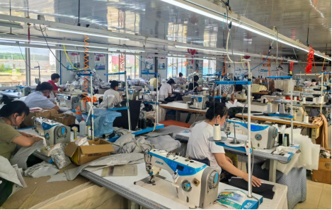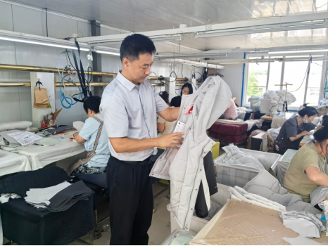杏树街道领导参观了企业的服装加工车间和包装车间。