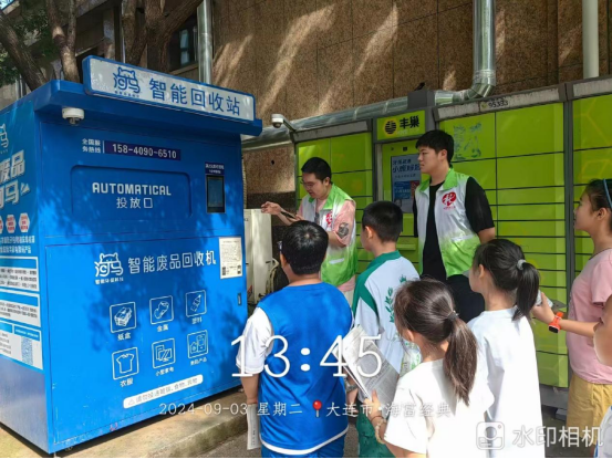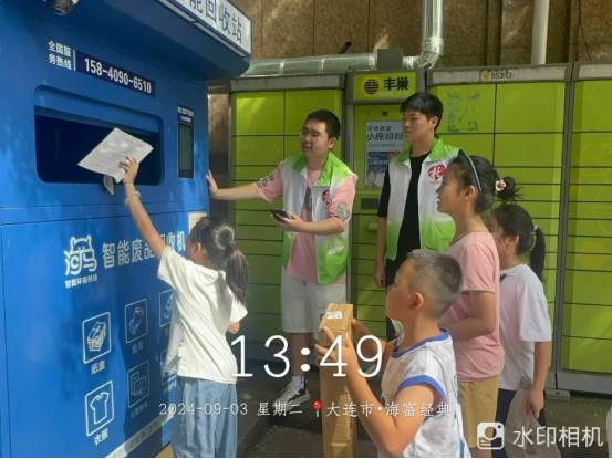 社区工作人员向孩子们简述了什么是垃圾分类,在我们大家平时的生活中,我们已经养成垃圾分类的好习惯,自觉维护大家的生活环境,但在小区内会产生大量的纸壳、塑料、金属等有回收价值的东西,这些有价值的“边角料”,弃之可惜、收之无门,我们该如何处理?社区工作人员像小朋友讲解了怎么使用智能回收机,只需简单地操作,就能将可回收物投进回收网点,还能获得一定的奖励,实现再生资源循环利用。同时,也让孩子们通过自己的宣传,让自己的爸爸妈妈们也知道可回收智能回收机。不断提升居民的知晓率和参与率。将垃圾分类工作渐渐的走进千家万户,走进居民的心里。