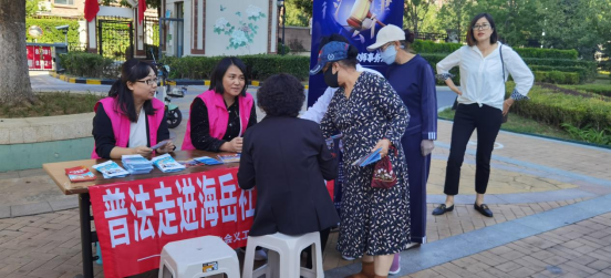 在庆祝金普新区建区40周年之际,为切实做好社区普法宣传工作,真正让法律走到居民身边、走进居民心里,营造全民尊法、学法、守法、用法的浓厚氛围,9月25日海岳社区联合大连市律师协会义工团及大连克伦律师事务所开展"普法进社区 以理伴你行"普法宣传活动。