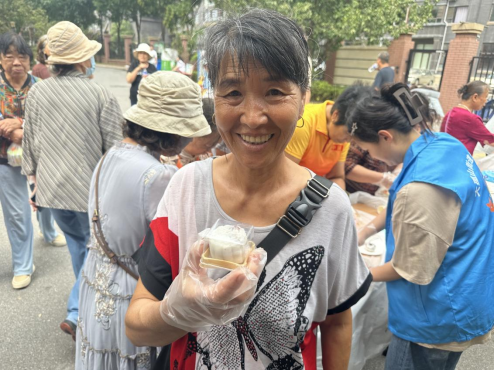 除了制作猜谜语寻宝藏,现场志愿者带领大家学习如何制作月饼。他们耐心地讲解制作流程,分享了各种制作技巧。在工作人员的指导下,居民们纷纷动手,揉面、包馅、模具成型,每个人都投入其中,现场一片欢声笑语。