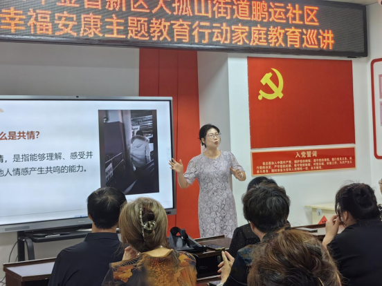 为助力社区家庭教育,建设良好家风,营造文明社区风气,近日,大孤山街道鹏运社区新时代文明实践站开展“共情陪伴,让我们的家更有温度”家庭教育讲座活动。