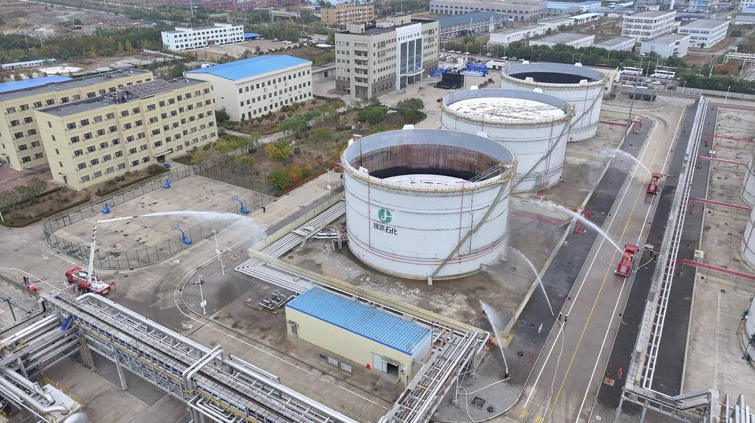 演练现场大连锦源石油化工有限公司模拟700立方米液化烃罐区G603储罐底部泄漏发生火灾爆燃,临近重污油储罐罐体破裂,污油泄漏起火。按照信息报送流程,该公司立即向松木岛应急管理局和金普新区生态环境分局汇报情况,拨打119、110报警电话请求救援,并启动公司生产安全事故、突发环境事件和辐射事故应急预案,开展自救。