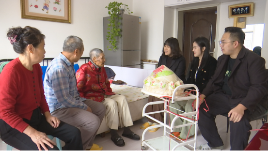 为弘扬中华民族“尊老、敬老、助老”的传统美德,近日,大孤山街道鹏达社区开展“浓浓敬老情,关爱暖人心”活动,为辖区百岁老人周连山送去温暖和关怀,并致以重阳节节日问候。