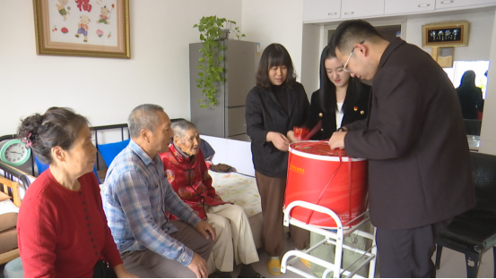 鹏达社区工作人员来到周连山家中,向其家属详细询问老人身体情况,叮嘱有困难要向社区反映,并给老人送去节日祝福和米、面、寿桃等慰问品,让老人感受到浓浓的节日氛围。老人笑着表示感谢,还给大家唱了两首红歌。