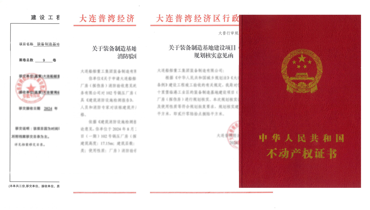 近日,大连船舶重工集团装备制造有限公司装备制造基地建设项目锅压厂房(探伤房)取得了不动产权证,企业负责人在领取证书时,高兴地说:困扰公司多年的办证难题得以解决,我们没了后顾之忧!
