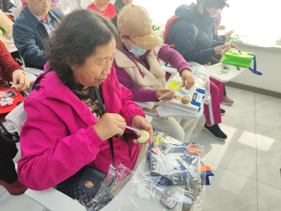 结合讲座又进行了第二项活动,手工DIY毛毡包,包可以作为日常生活中的必备品,实用性强。社区提供各种材质和颜色的布料、扣子、针线等工具,供居民选择和使用。在制作过程中不仅能够让居民放松心情、锻炼动手能力,还能通过与家人或朋友的共同参与,增进彼此之间的感情。活动结束后,大家相互展示自己的作品,互相评价、交流心得。