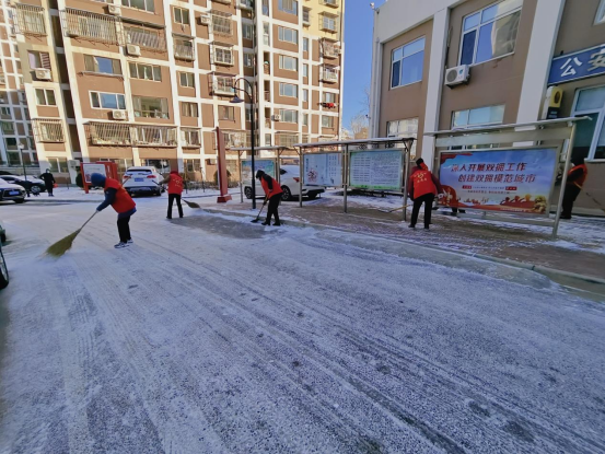 活动现场,大家拿起铁锨扫帚埋头苦干,不畏严寒,干劲十足,挥舞着雪铲、扫帚、铁锹等劳动工具,互相配合,分工合作,有的在前面铲除积雪,有的在后面清理残留的雪和冰块,时不时传出铁锹和地面的摩擦声,夹杂着扫帚的沙沙声,奏响了别样的“冬日扫雪曲”,忙碌的身影构成了一道靓丽的风景线。在大家的共同努力下,原本积雪覆盖的道路被清理得干干净净,为居民扫出了一条“温暖通道”。